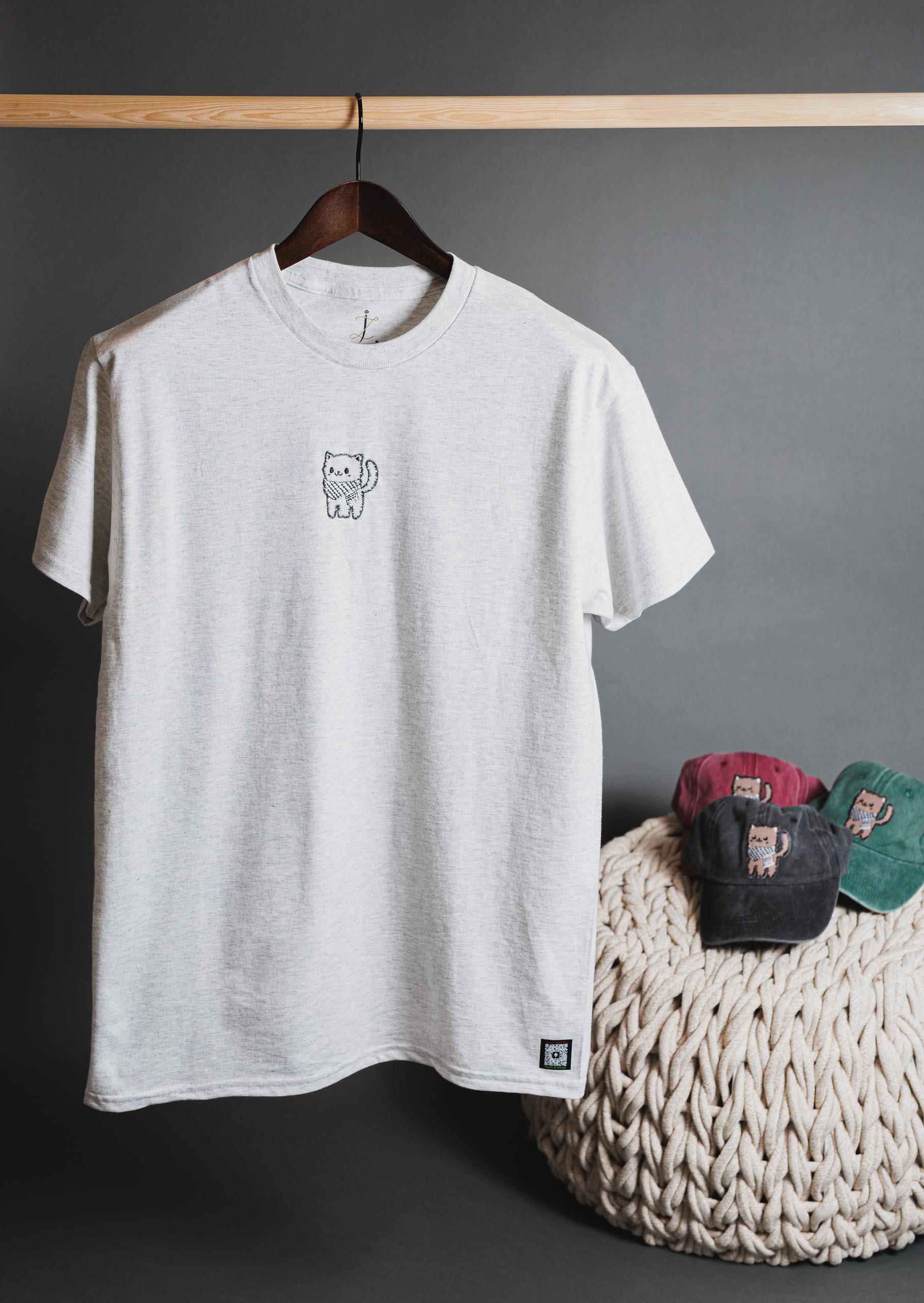 Heritage with a playful twist! This soft, midweight cotton t-shirt features a Tatreez-stitched cat wearing a keffiyeh, proudly placed in the center for a bold and fun statement—always visible under jackets. Designed for all-gender wear, it’s the perfect mix of culture and charm.