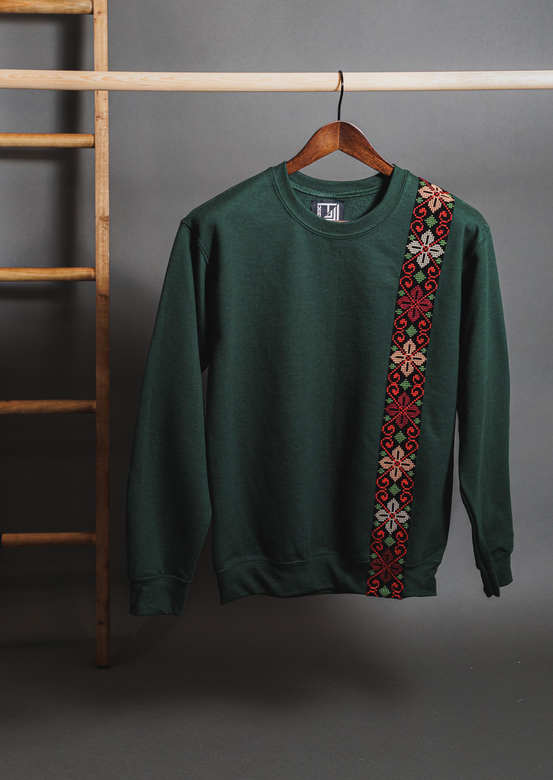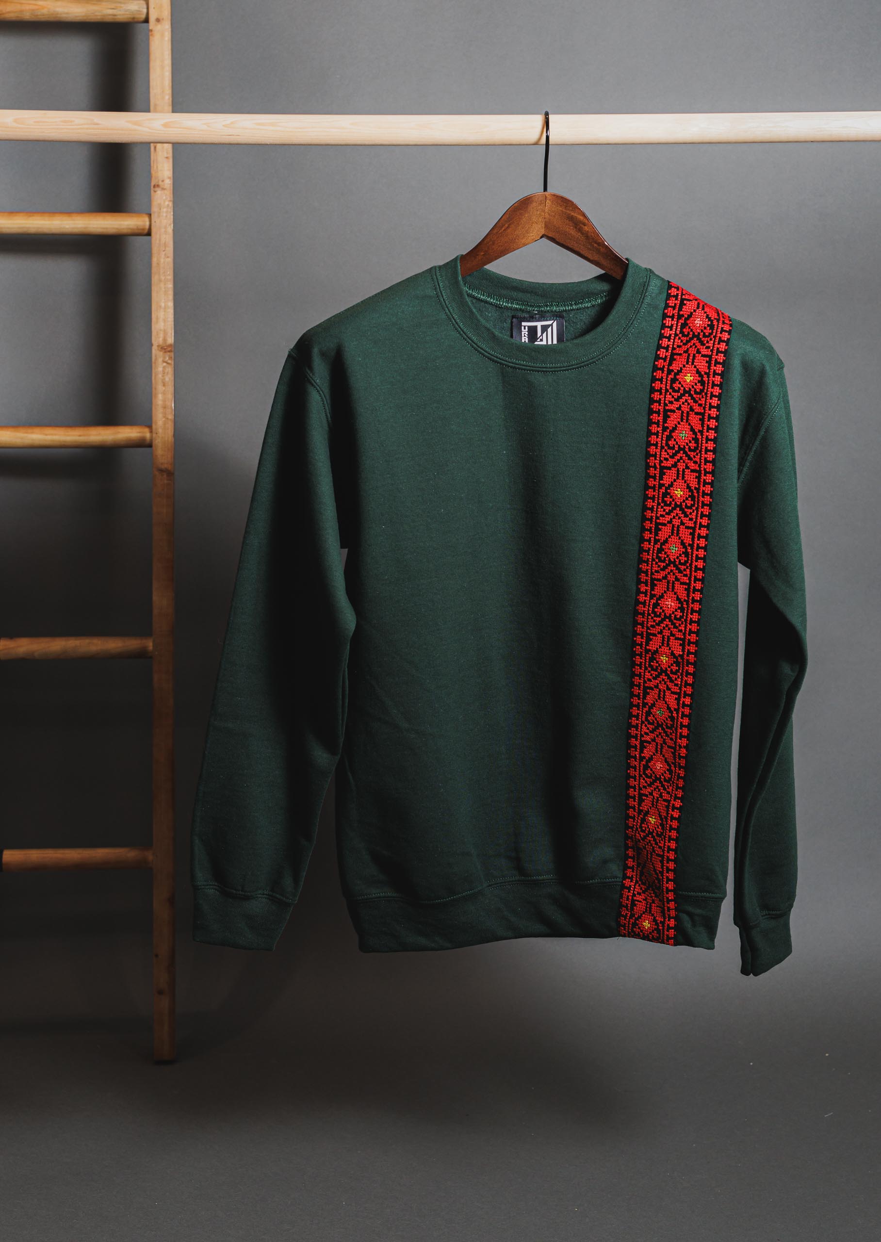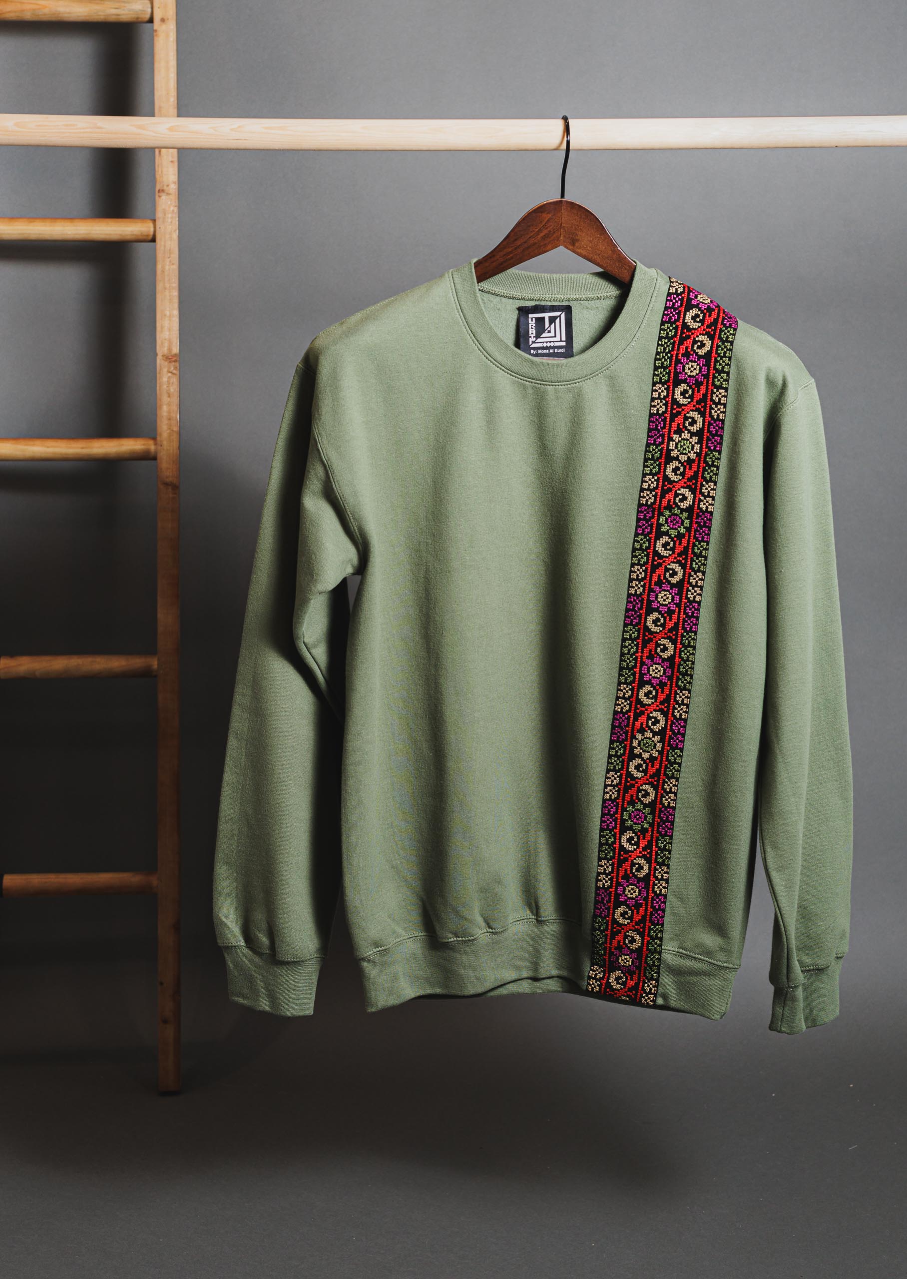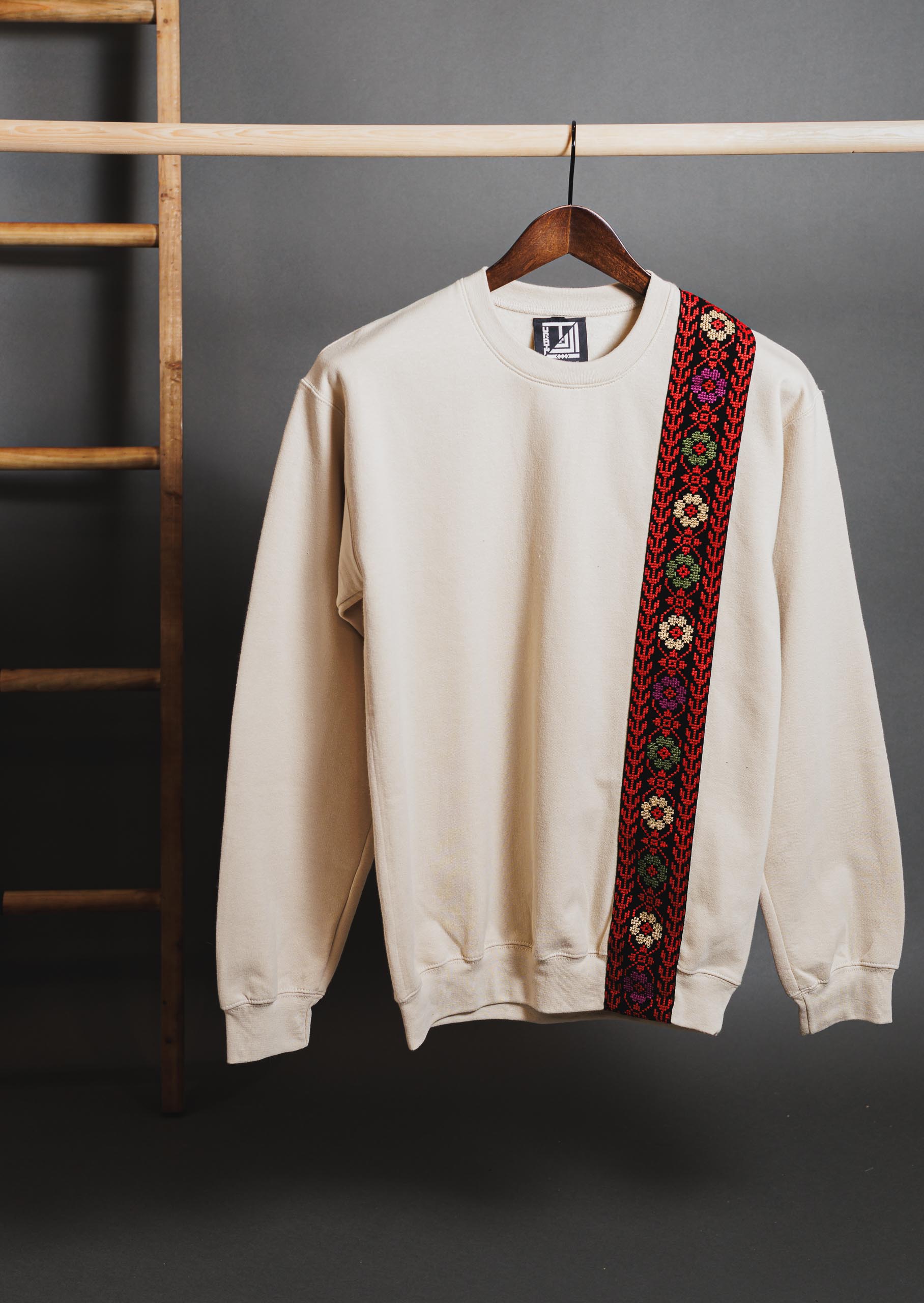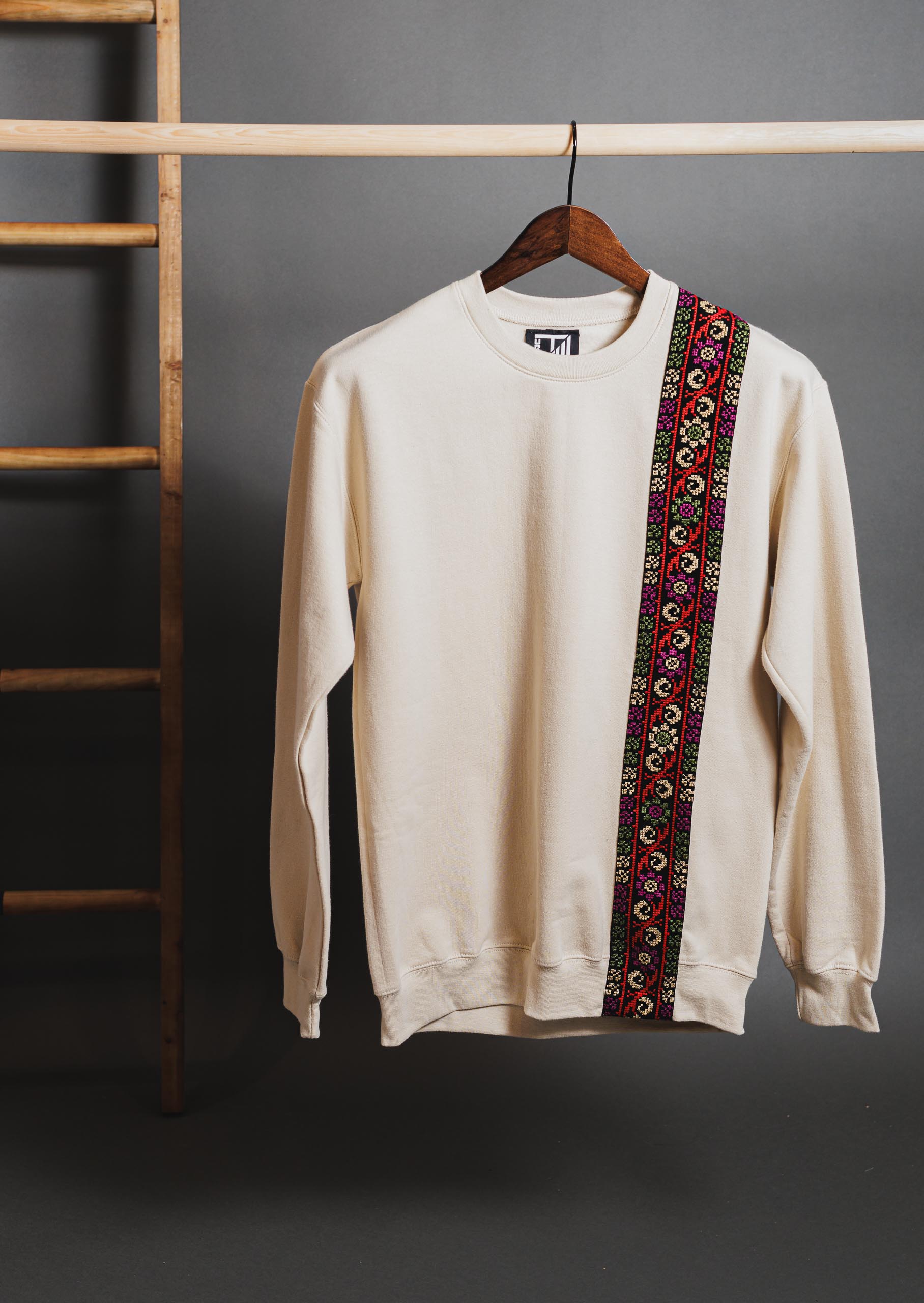 The Tatreez Strip Sweatshirt brings heritage into the everyday. Featuring a clean strip of traditional Palestinian tatreez across the chest, this piece is designed to make our culture more accessible—without losing its soul.
