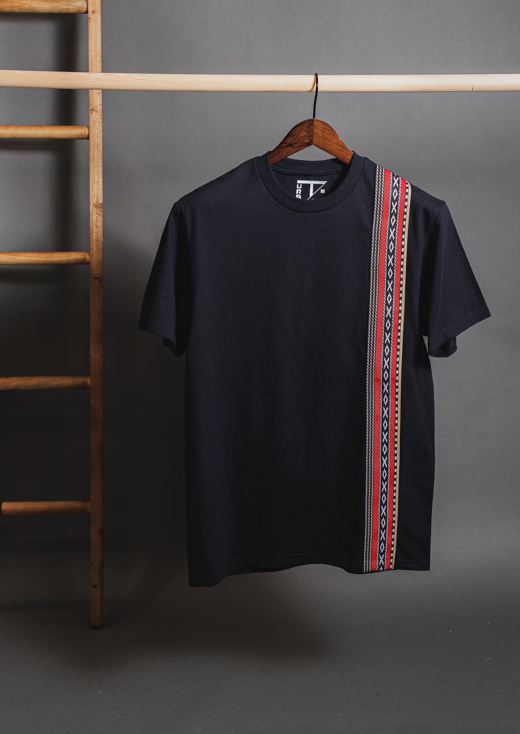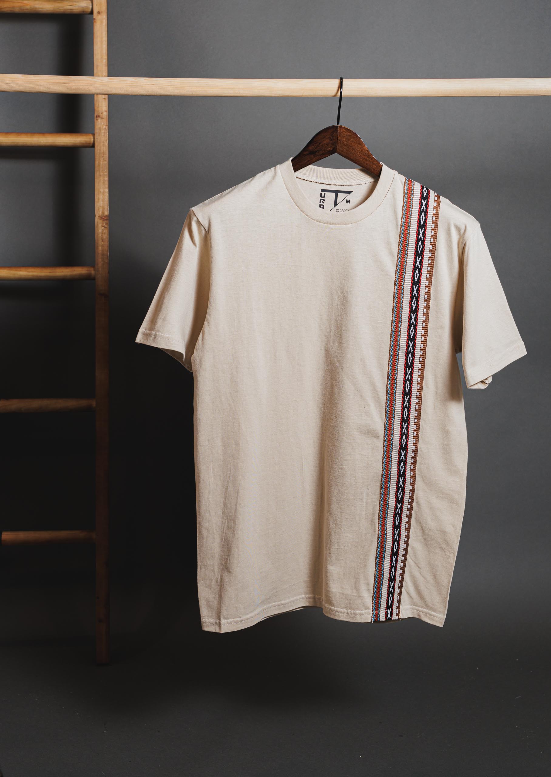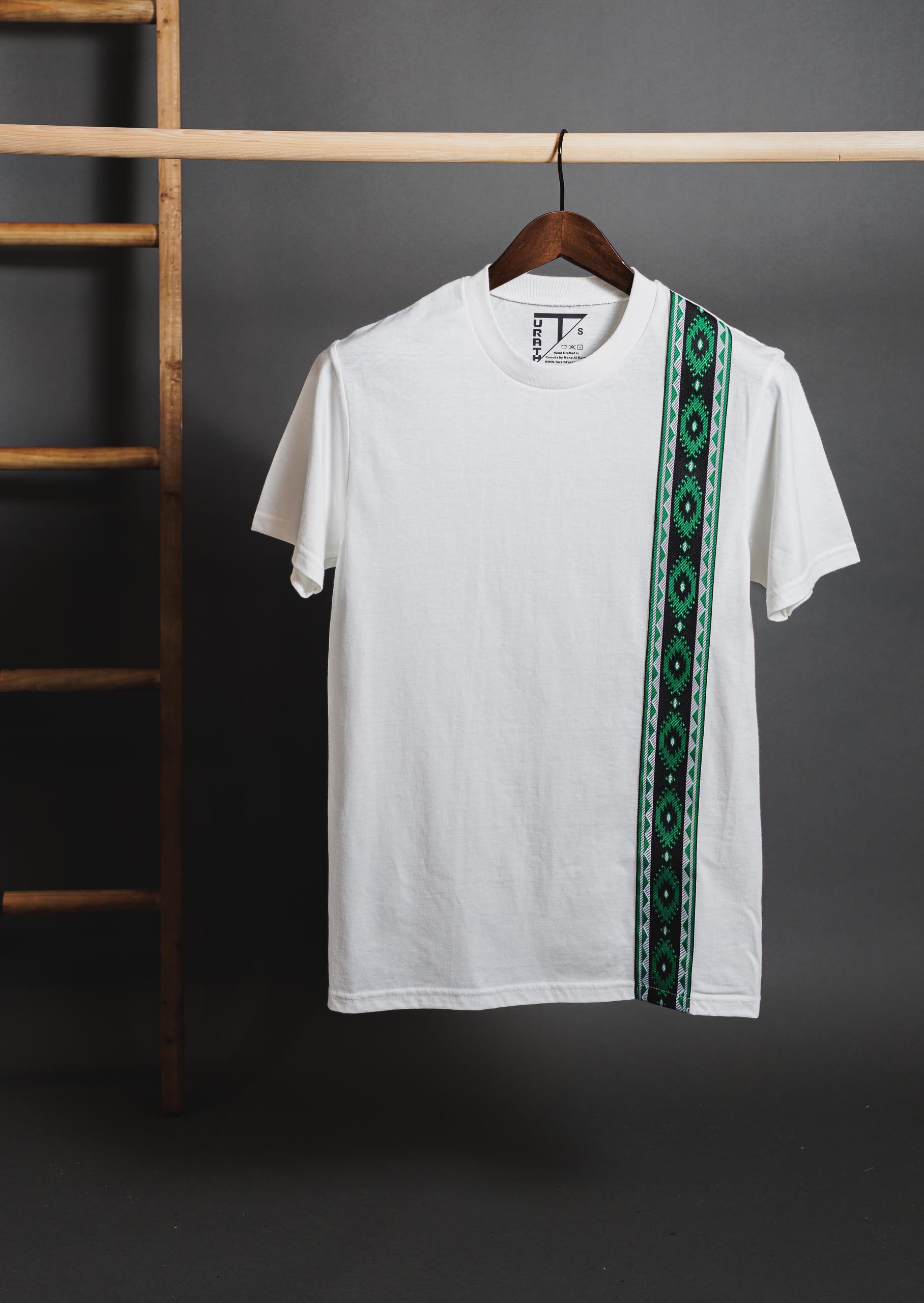 The Sadu Strip T-Shirt brings a timeless Bedouin weaving style into your everyday wardrobe. Featuring a strip of Sadu (سدو) across the chest—known for its striking geometric patterns—this tee makes heritage wearable, effortless, and proud.