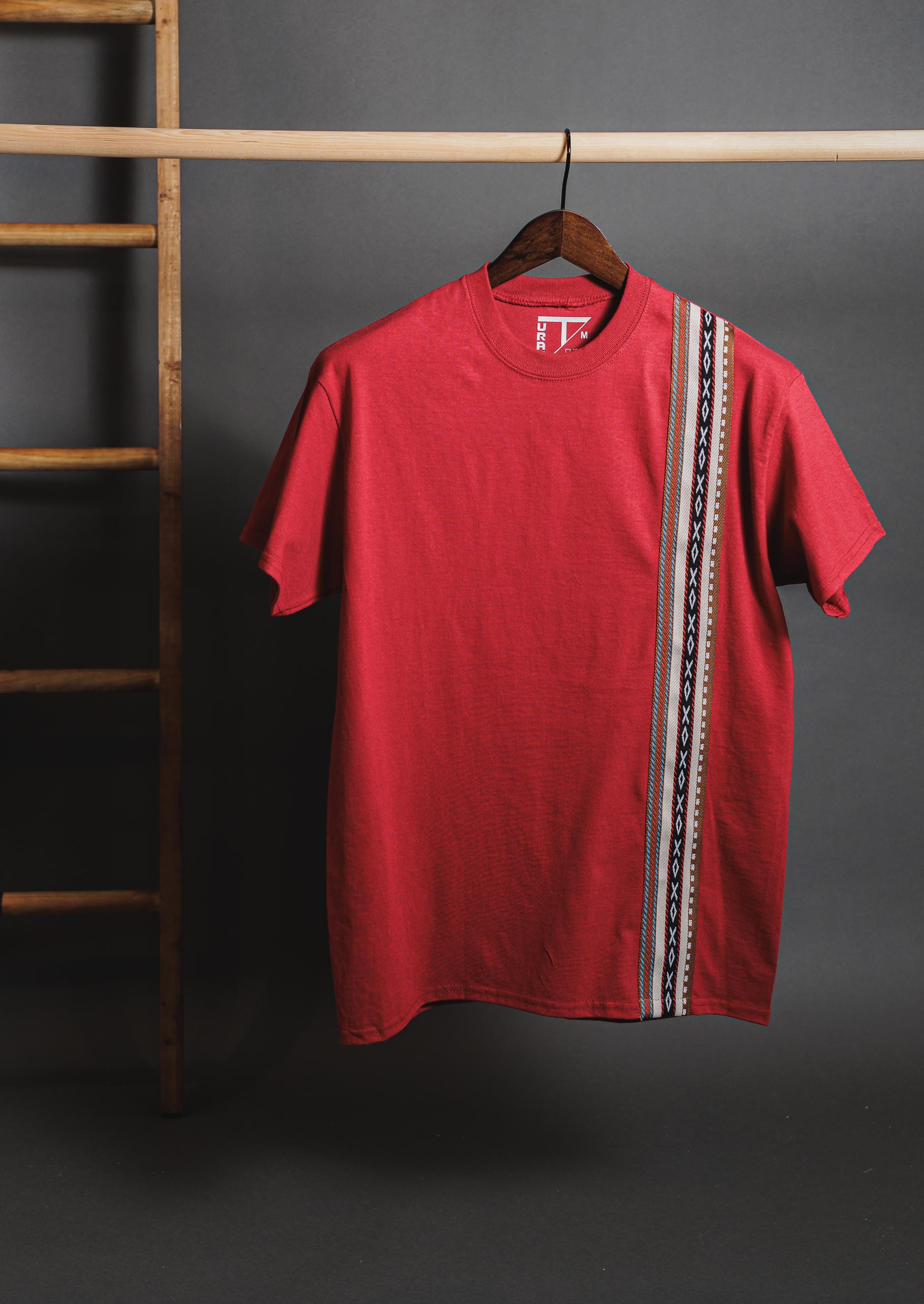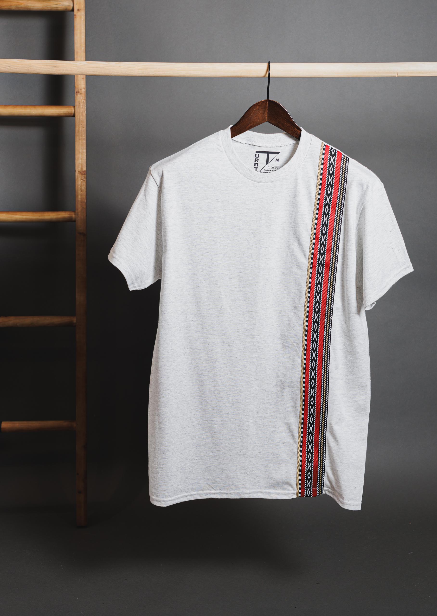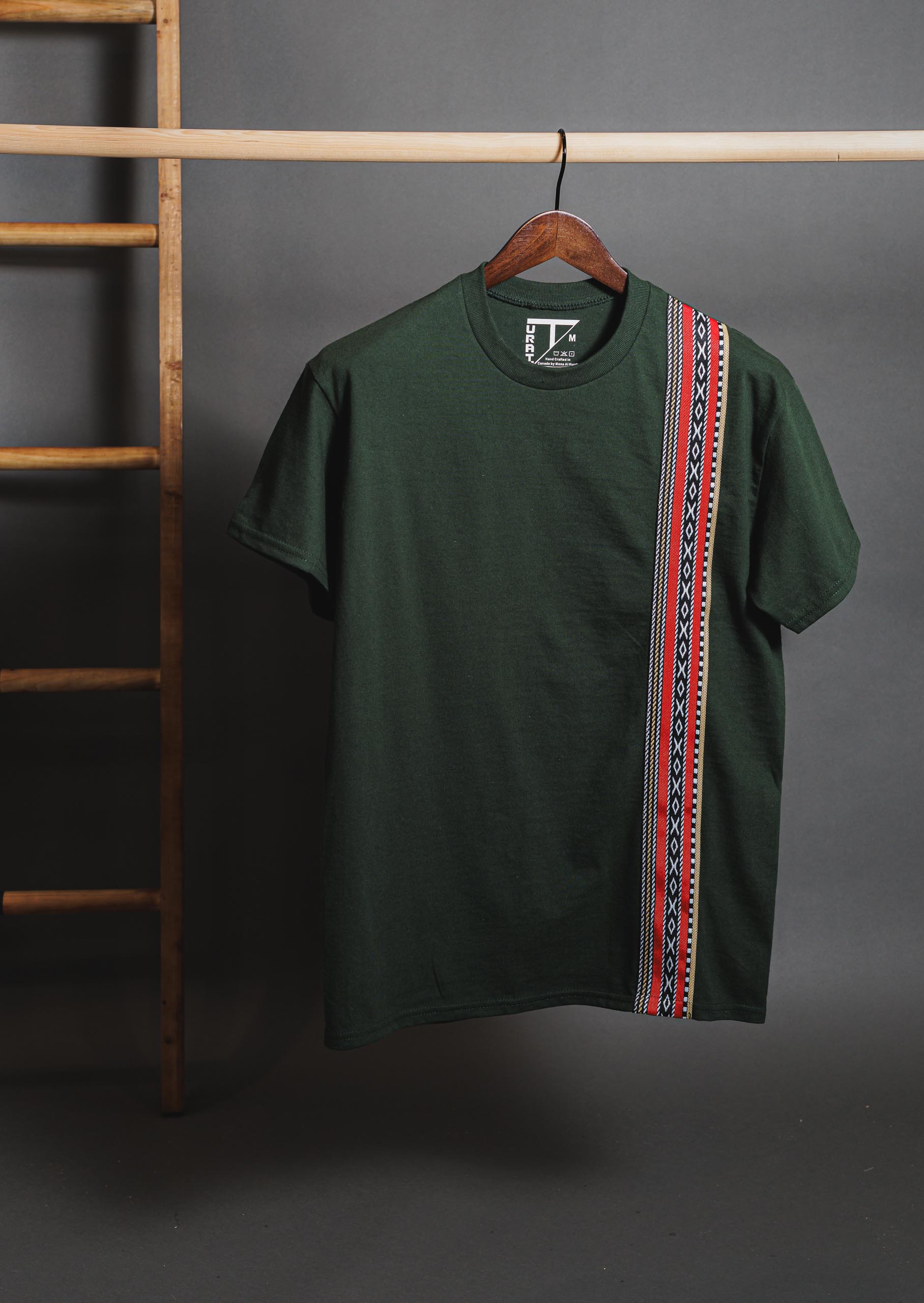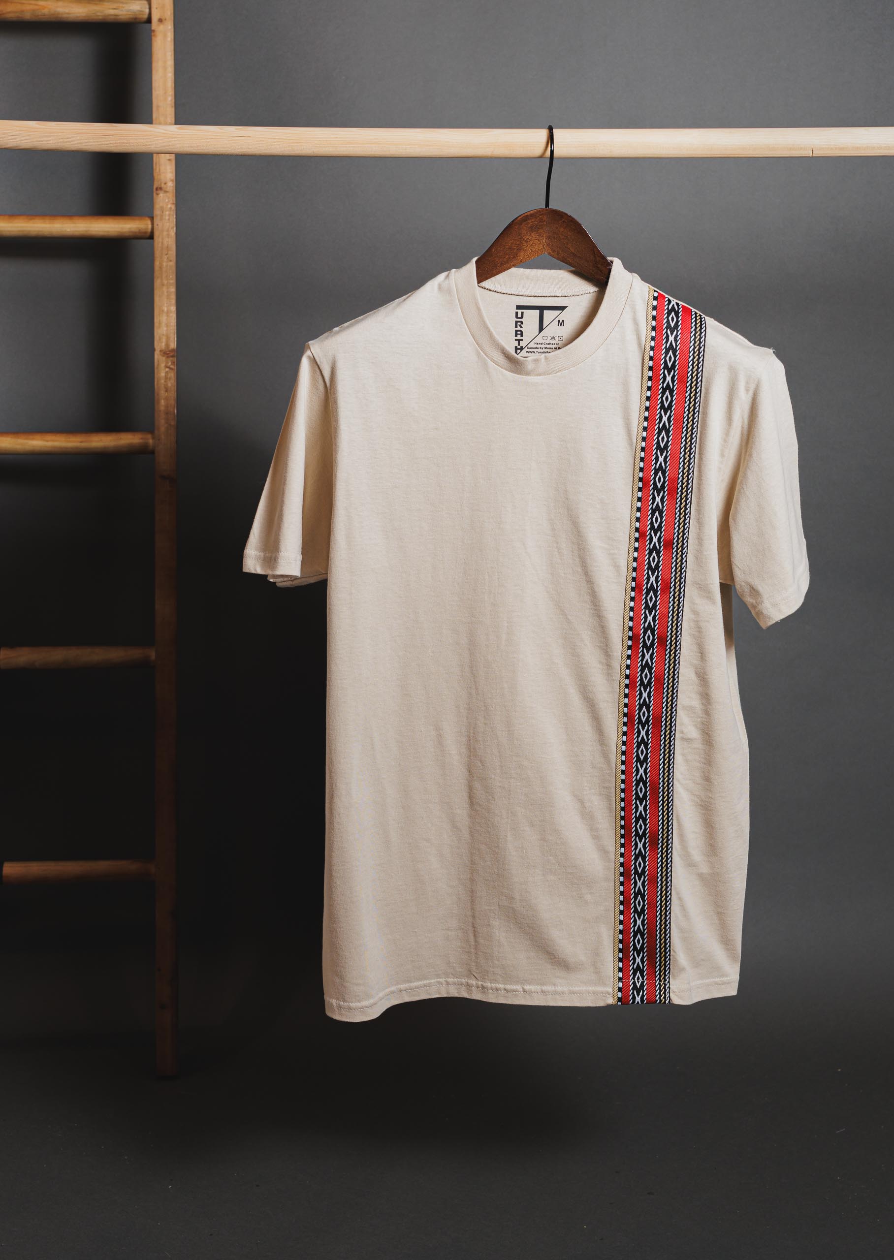 The Sadu Strip T-Shirt brings a timeless Bedouin weaving style into your everyday wardrobe. Featuring a strip of Sadu (سدو) across the chest—known for its striking geometric patterns—this tee makes heritage wearable, effortless, and proud.